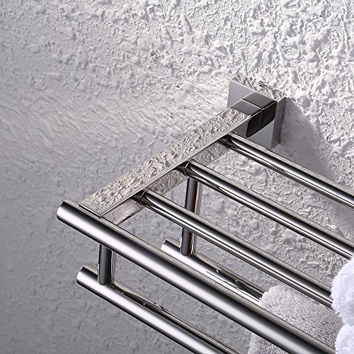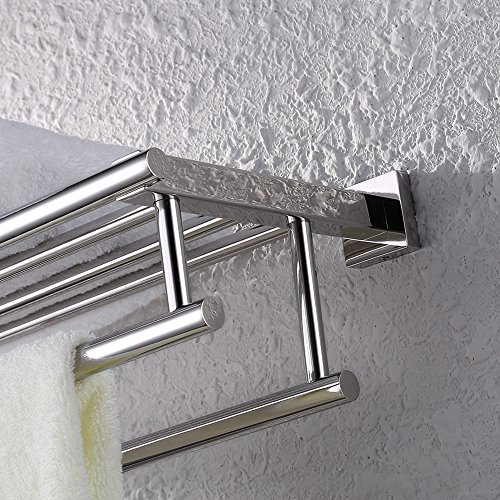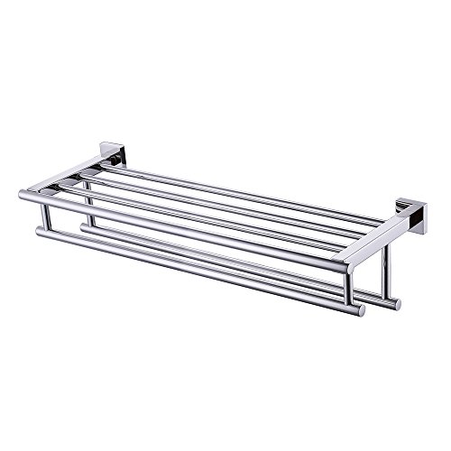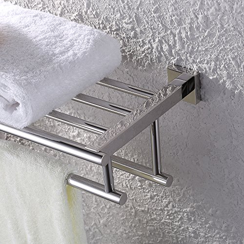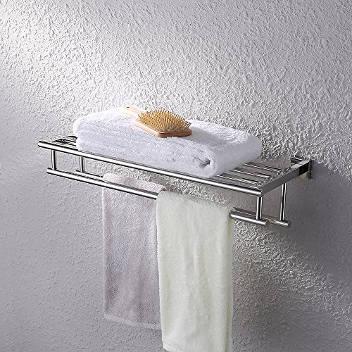 KES Bathroom Bath Towel Rack with Double Towel Bar 24-Inch Wall Mount Shelf Rustproof Stainless Steel Polished Finish, A2112