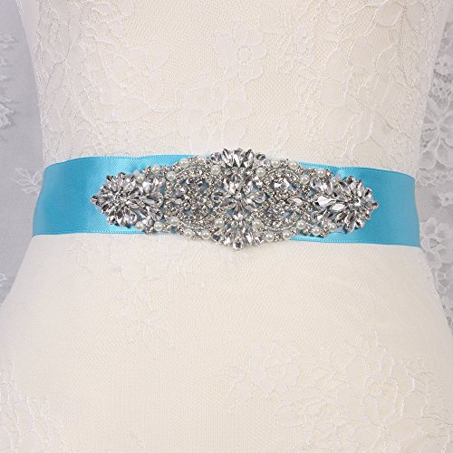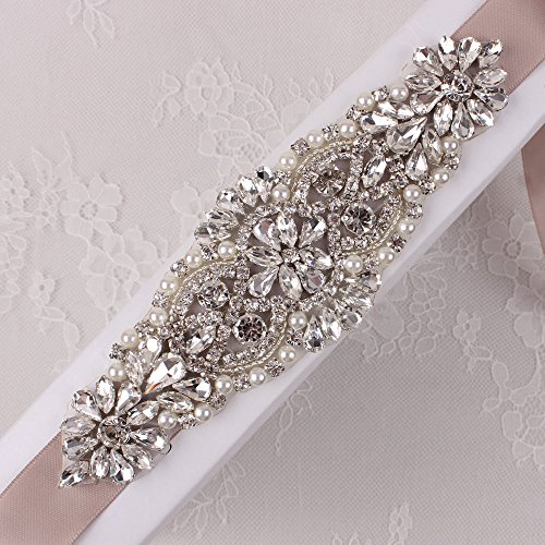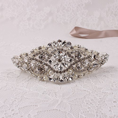 Beaded Applique with Rhinestones and Pearls for Wedding Sash or Head Piece-Silver-1 Piece(6.1"2"in)