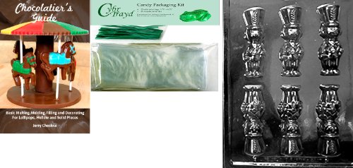 Cybrtrayd Wooden Soldier Chocolate Mold with Chocolatier's Bundle of 25 Cello Bags, 25 Green Twist Ties and Chocolatier's Guide