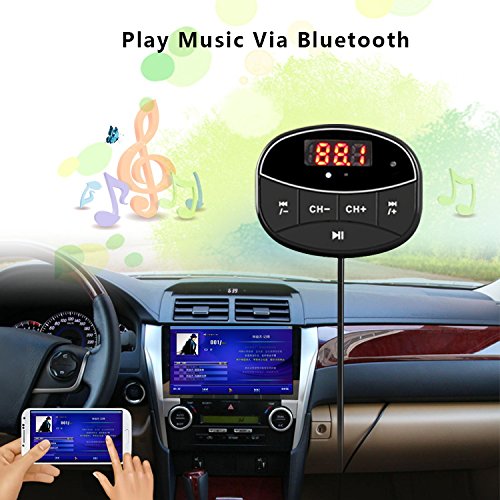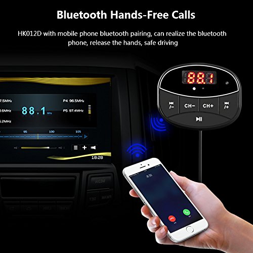 Dual USB charger - This Bluetooth FM Transmitter has two USB ports, one is output at 5V/2.1A, one is output at 5V/1A