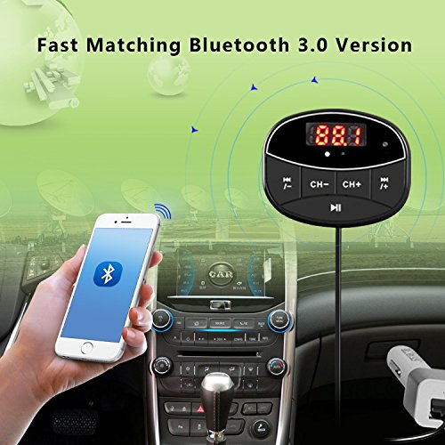 Aresh Wireless FM Transmitter, In-Car Bluebtooth Receiver Radio Adapter Car Kit with Dual USB Car Charger Hands-Free Calling for iPhone