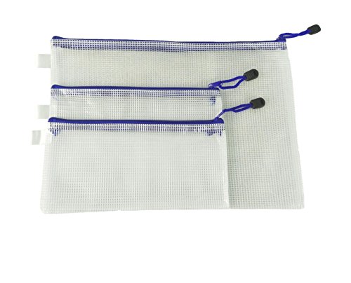 E-lishine Travel Pouch-Organizer Storage Packing Bags,Water Resistant Solid Reinforced PVC Mesh Plastic with Zipper Closure(Set of 3) (White)