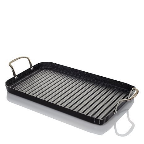 Ever wish you could grill year round, regardless of the weather? Curtis makes it happen with his double-burner grill. Big enough to feed a family, this versatile pan can handle pancakes and sausage, mouth-watering burgers, sizzling steaks and more. Its metal-utensil-safe DuraPan nonstick coating makes for no-hassle serving and easy cleanup too. Try it today ... and tell your family you're bringing grilling back!Feature