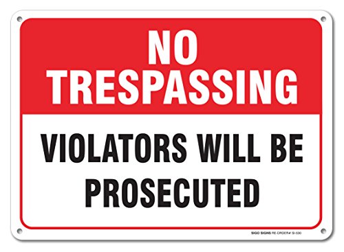 Private Property No Trespassing Sign - No Trespassing Violators Will Be Prosecuted Sign Legend 10 X 14 Rust Free .40 Aluminum