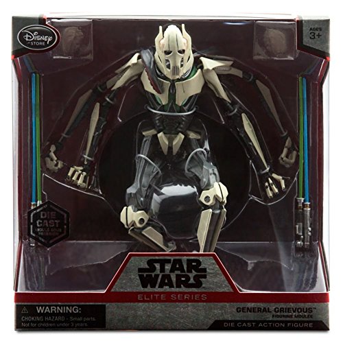 -. Binding : Toy -. Brand : Disney -. EAN : 5060310827105 -. Feature : Approximately 7 1/4'' tall / Meticulously crafted, fully poseable die cast action figure / Includes General Grievous figure, 4 lightsabers and standing base / Collect all the Star Wars Saga Elite Series Die Cast Action Figures, each sold separately / Product Dimensions 8.7 x 4.9 x 8.5 inches refers to the packaging of the unit not just the item itself. The item is approximately 7.25 inches by itself not including the packaging. -. IsAdultProduct : 0 -. Label : Disney Store -. LegalDisclaimer : Brand new in perfect box. -. Manufacturer : Disney Store -. MPN : na -. PackageQuantity : 1 -. PartNumber : na -. ProductGroup : Toy -. ProductTypeName : TOYS_AND_GAMES -. Publisher : Disney Store -. Studio : Disney Store -. Title : General Grievous Elite Series Die Cast Action Figure - 7 1/4'' - Star Wars -. UPC : 792158094313