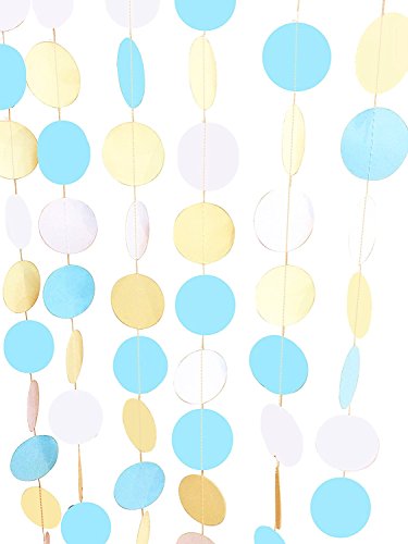 Fonder Mols 4 pack 10-feet Circle Dots Paper Party Garland Backdrop Color White Turquoise Yellow
