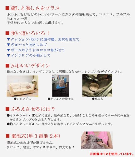 ● Power supply: 2 AA batteries (sold separately) ● Heatable fluffy feeling, shivering ball ● Shocking or leaning makes you feel comfortable when you bangle ● If you remove the battery you can also replace pillows, cushions and cushions