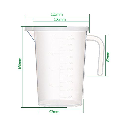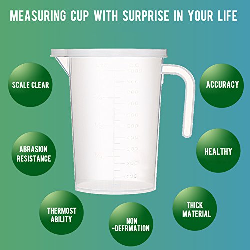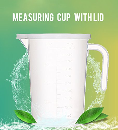 Measuring Cups Transparent PP Measure Pitcher with Lid and Handle 1000ml/ 34 oz