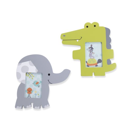 - The frames can be used as-is, or add your own 5 inch x 3.5 inch photo. The crocodile frame is 10 inches x 10 inches and the elephant frame is 10 inches x 11 inches. They are made of MDF.