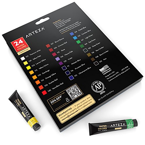 ARTEZA Watercolor Premium Artist Paints Set 24 Colors (24 x 12 ml / 0.74 US fl oz)
