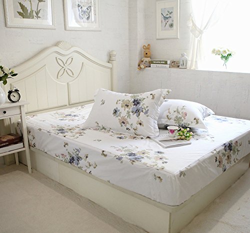 FADFAY 4-Piece Shabby White Floral Bed Sheet Set Cotton Bed Sheets, Queen