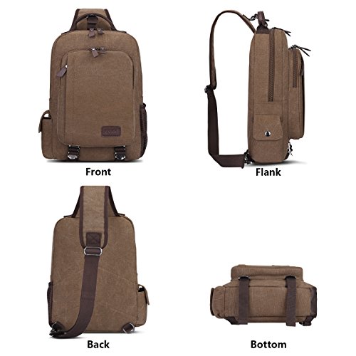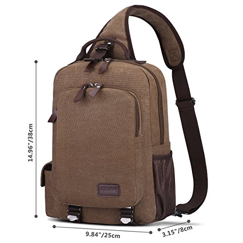 -. Feature : QUALITY & DURABLE: This S-ZONE sling bag is made of durable canvas material and nice quality PU leather trim on the outside / DURABLE & HIGH CAPACITY: The bag is about 9.84"/25cm(L) x 14.96"/38cm(H) x 3.15"/8cm(W). The shoulder bag can fit a laptop up to 13.3 inch. This canvas bag is not a large backpack, but it is a great size to take to a day trip or shopping. Length of adjustable shoulder strap is 34.6"/88cm-48.8"/124cm / MULTI-COMPARTMENT: The canvas messenger bag is vintage and multifunctional with lots of pockets. 2 outside zipper pockets ; 2 side pockets. The main compartment is fitted with two zip heads and pulls: 1 inner zipper pocket; 1 inner PADDED laptop compartment; 2 inner small pockets. A small laptop, iPhone, wallet, snacks, tickets and magazine will all fit comfortably with room left over for add-ons / Comfortable: Zipper closure. The straps, back, and bottom is padded. The strap can be unclipped and attached to either side at the bottom, so you can wear it on whichever shoulder is most comfortable / EUSEFUL: It is a great daypack for work, traveling, school, dating, shopping and outdoor activities in daily life. This bag is ideal for everyone from the college student, busy professional or mom to bike messenger or outdoor enthusiast