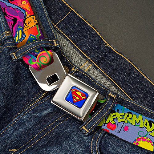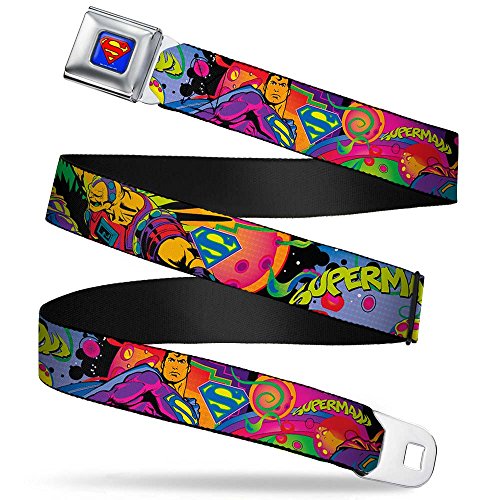 Buckle-Down's iconic Seatbelt Belt is a cool, smart, and exciting blend of fashion and function. Always a conversation starter, our Seatbelt Belt adjusts to perfectly fit your waist while showcasing your unique sense of style. Our Seatbelt Belts are made with authentic automotive style seatbelt buckles making them easy to open and close at the push of a button. Our Seatbelt belts are 1.5 inch wide and are infinitely adjustable for pants sizes 32 to 52. This product is Handcrafted in USA by Buckle-Down Inc. and Officially Licensed by DC Comics.