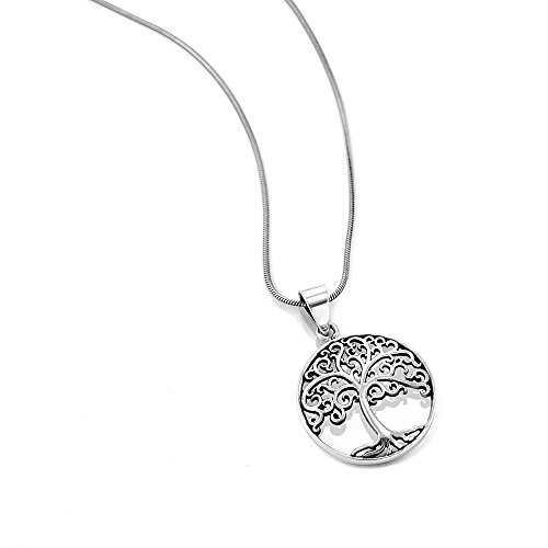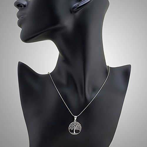 -. Title : Sterling Silver 21 mm Filigree Tree of Life Symbol Round Pendant Necklace, 18'' Snake Chain