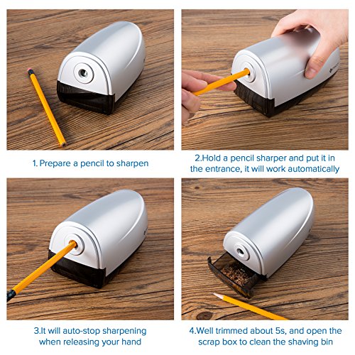 - Amazing Quality and Performance: The powerful Electric Pencil Sharpener makes with high quality stainless steel blades and heavy-duty plastic, provides you a perfect sharp point with ease and no jams! Ideal for artist, teachers, students and business people. Both professionals and students