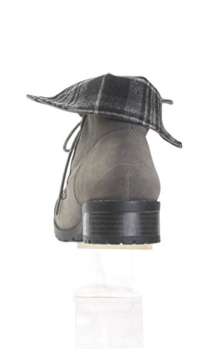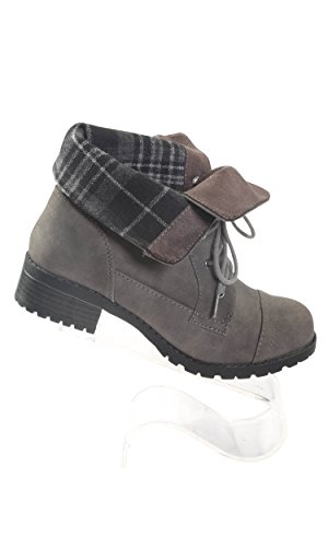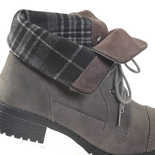 Hadari Women's Stitch Frontal Lace Boots with foldover plaid print