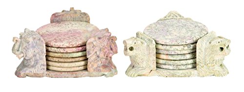 Deco 79 16356 Soapstone Coaster (set of 2), Assorted, 5" x 2"