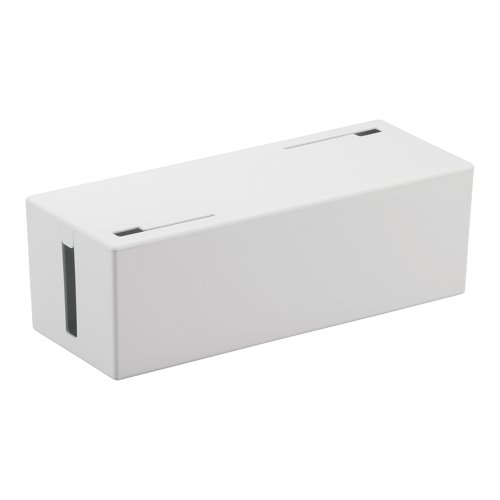 「ごちゃごちゃ」したケーブルを「スッキリ」見せるケーブルボックス。インテリアとしても活躍するスタイリッシュデザイン。ボックス天面での充電に便利なケーブルホール。材質:ポリスチレン。
