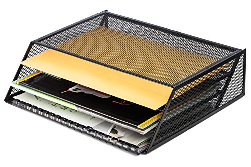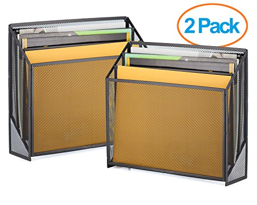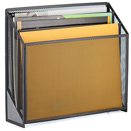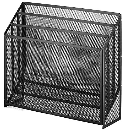 Halter Universal Steel Mesh Three Slot Standing File Organizer - Black - 2 Pack