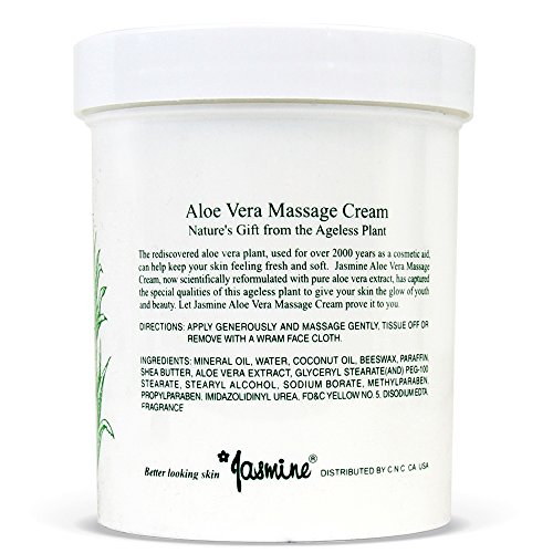 Studio : California Nutrition Corp. (Distributed By:) Publisher : California Nutrition Corp. (Distributed By:) Binding : Health and Beauty Product Description The rediscovered aloe vera plant, used for over 2000 years as a cosmetic aid, can help keep your skin feeling fresh and soft. Jasmine Aloe Vera Massage Cream, now scientifically reformulated with pure aloe vera extract, has captured the special qualities of this ageless plant to give your skin the glow of youth and beauty. Let Jasmine Aloe Vera Massage Cream prove it to you 0