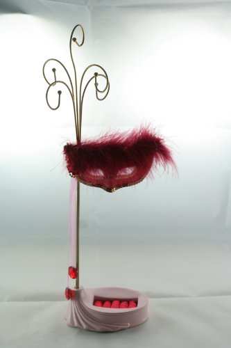 -. Title : Beautiful Feathers Masquerade Mask Jewelry Stand Rings Holder (Red/pink)