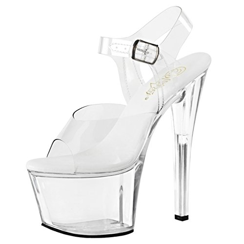 Womens High Heel Shoes Clear Platform Sandals Ankle Strap Open Toe 7 Inch Heels