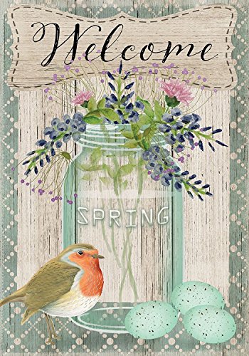 Springtime Welcome Floral Garden Flag Bird Eggs Mason Jar 12.5" x 18"