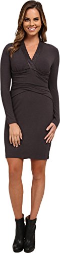 Long-sleeve dress in a soft-stretch fabric that brings ultimate comfort. Surplice neckline with satin-like trim. Figure-flattering wrap-suede design embellishes the waist. Hidden back zip closure. Straight hemline. Bodice is lined in smooth polyester to smooth, but not compress. Patented crisscross panel trims the tummy. Power mesh lining provides a slim appearance. Silicone taping on the interior hem to prevent ride up. Self: 80% viscose, 15% polyester, 5% elastane;