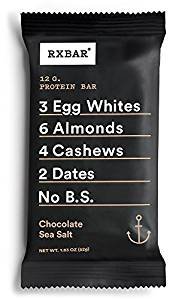 -. Feature : Healthy, delicious protein bars made with nutritious, real food ingredients / Each variety pack of RXBARs contains one bar of each delicious flavor: / Chocolate Sea Salt, Coconut Cacao, Blueberry, Coffee Cacao, Peanut Butter, Apple Cinnamon, Pumpkin Spice and Mint Chocolate. / Eight or Less 100% Natural Ingredients: No grains, added sugars, gluten, soy, dairy or any artificial or processed ingredients. / 12g of protein in every 1.83 ounce bar comes from all-natural egg whites and raw almonds.