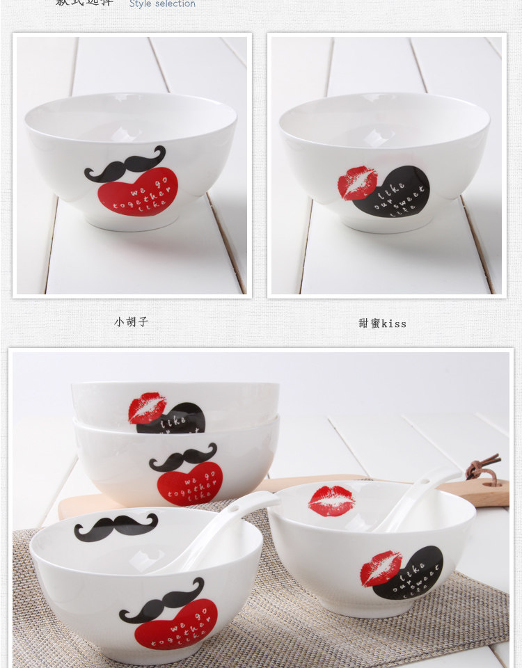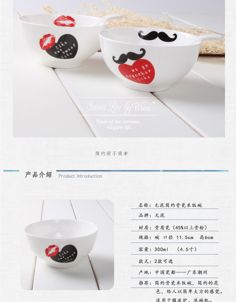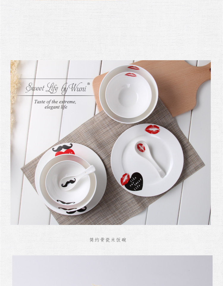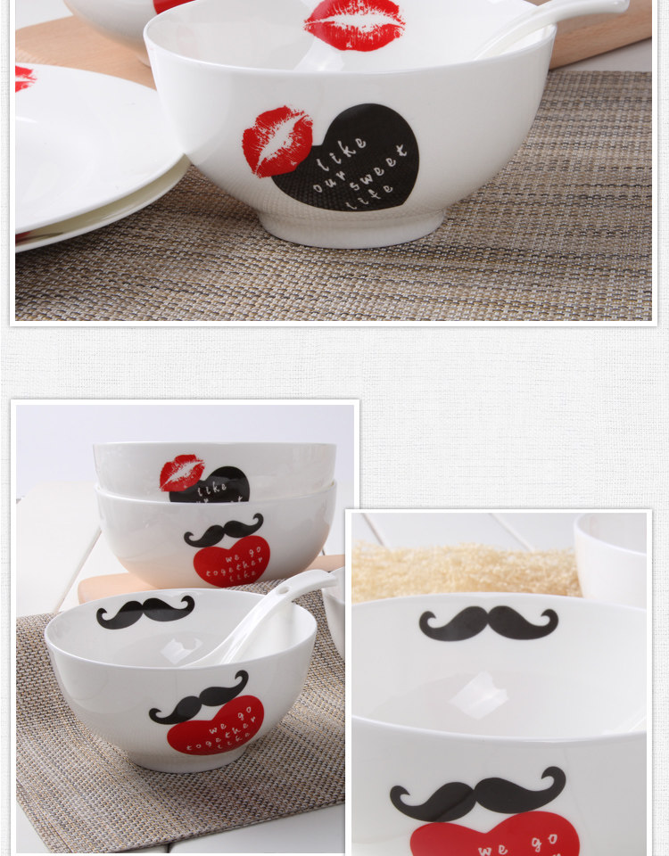 七夕情人节礼物 陶瓷碗骨瓷4.5寸 米饭色拉碗泡面碗汤碗餐具套装