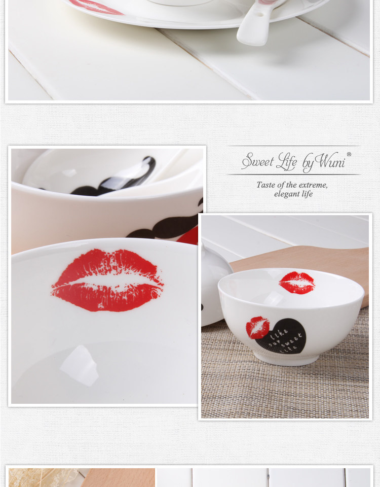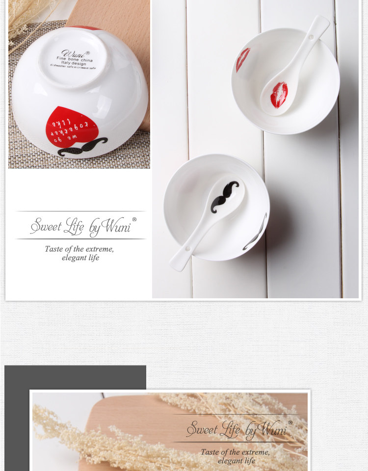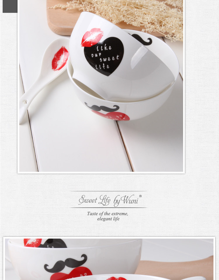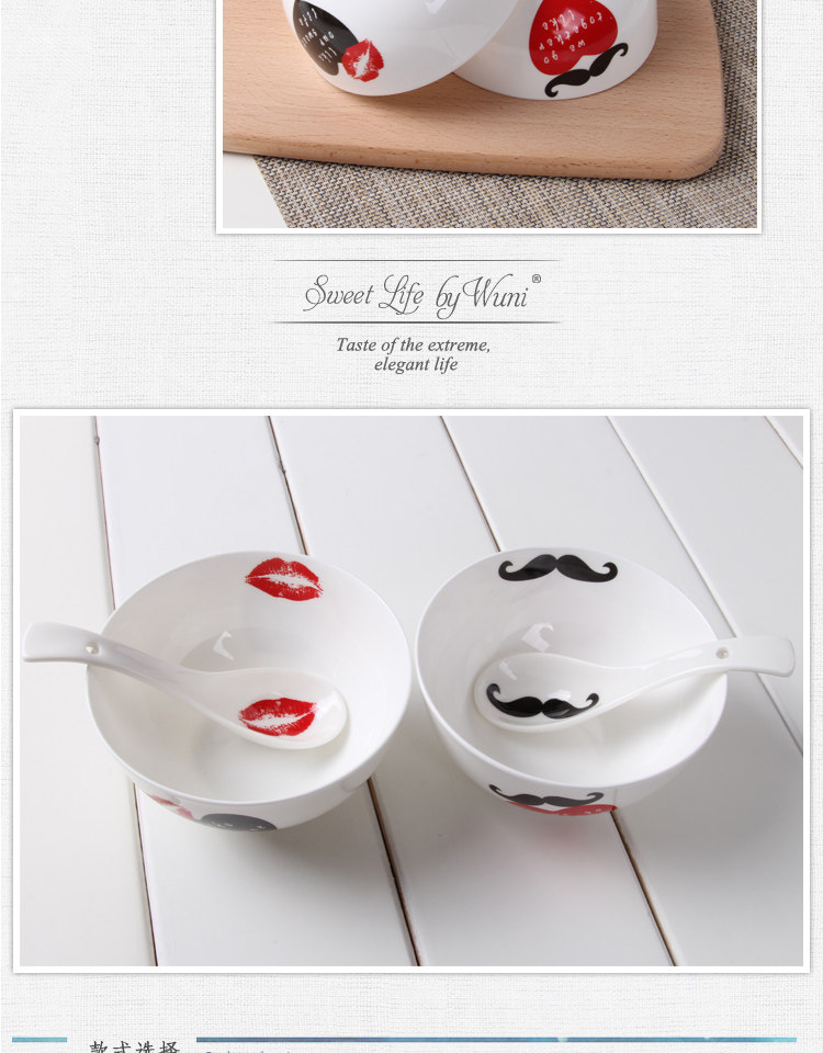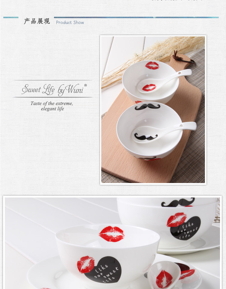 七夕情人节礼物 陶瓷碗骨瓷4.5寸 米饭色拉碗泡面碗汤碗餐具套装