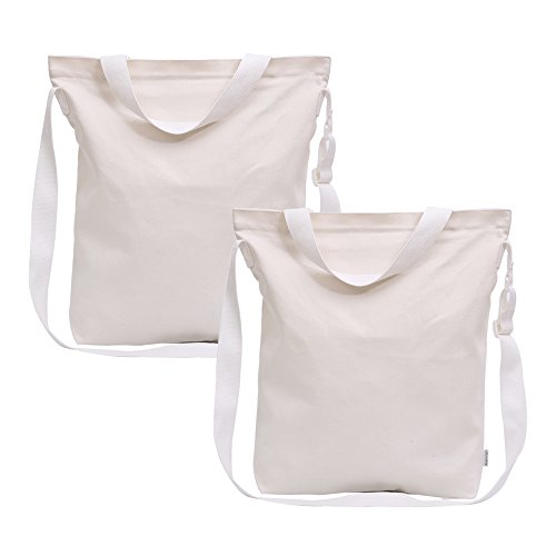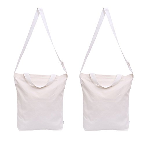 Augbunny 12oz Canvas Zipper Shoulder Grocery Tote Handbag Adjustable Handle With Inside Pocket 2-pack