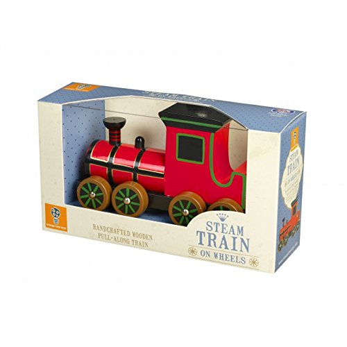 From our Vintage Collection, this toy Steam Train pull along is a beautiful traditional wooden toy. Painted in red, with beautifully painted detail to replicate a traditional Victorian steam train. A gift even Prince George enjoys.Feature