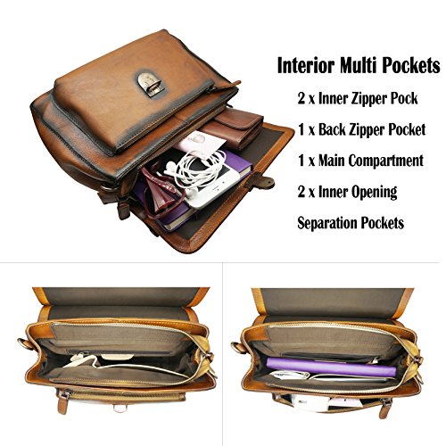 - High quality Genuine Leather, feels luxury and comfortable. Hand feeling and deeply impressed enjoy. Looks even better after using for a long time. Handmade dip dye process make it unlike the backpacks on the market.
