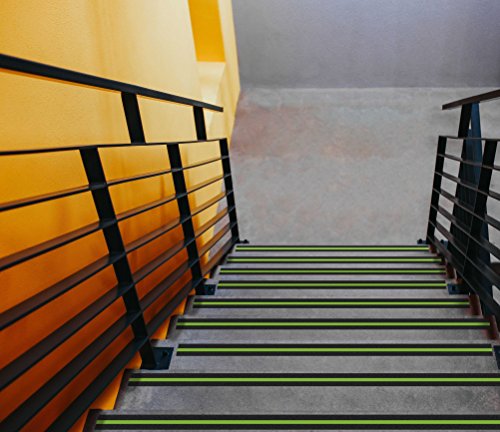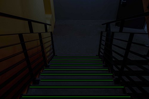 Has a green material that will glow in dark to make stairs and floors more visible at night. Reduces the risk of injuries