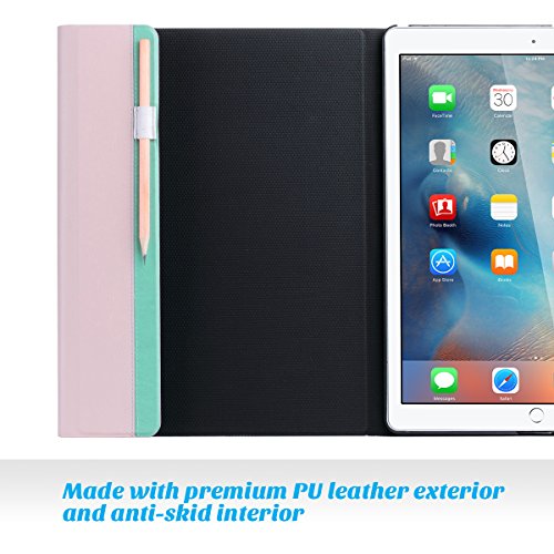 iPad Pro Case, ULAK Folio Smart Stand Case Premium PU Leather Cover with Auto Wake/Sleep Feature for Apple iPad Pro 12.9 inch 2015 Released (Pink+Mint Green)