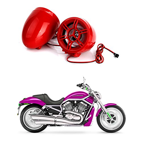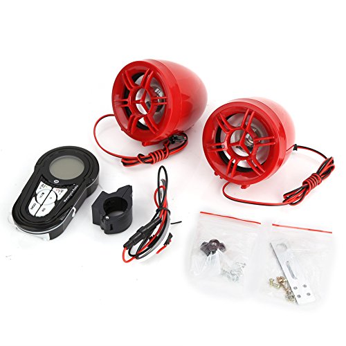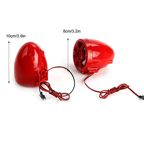 Rupse Waterproof Motorcycle ATV UTV Bike Handlebar Speakers Audio Sound System Bluetooth MP3 FM Radio with Display Screen 3" Red Trumpet Horn