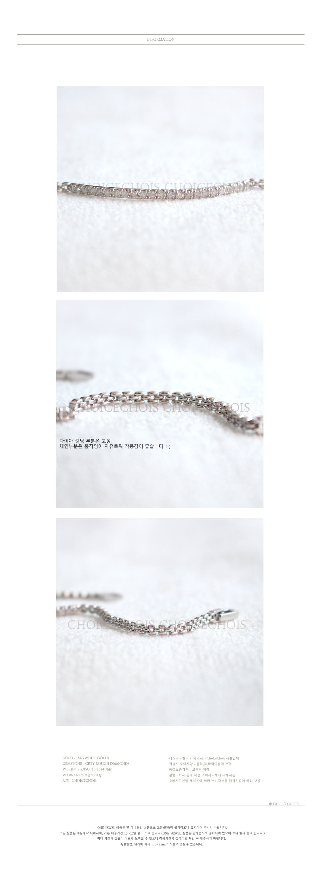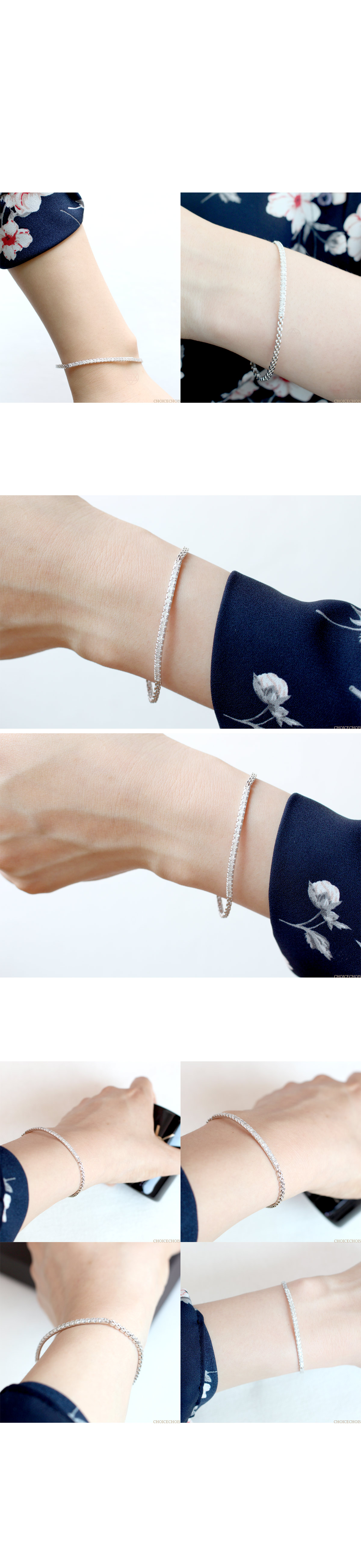 팔목 중간 부분 모두 다이아가 셋팅되어있어 반짝임이 돋보이는 팔찌입니다.