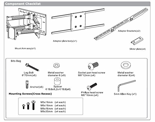 -. Binding : Electronics -. Brand : Universalmounts -. Color : Black -. EAN : 0640265057915 -. Feature : TV extendes 4.9" - 32" from the wall / Vesa 600 x 400, 400 x 400, 300 x 300 ... Roll option to level the screen after Installation / Dual Stud, Dual Arm Supports up to 180 lbs / Includes Universal wall Plate (no extra wall mount to purchase) / Mounting hardware Included -. Label : Universalmounts -. Manufacturer : Universalmounts -. Model : LYSB00NBE8TLY-ELECTRNCS -. MPN : LYSB00NBE8TLY-ELECTRNCS -. PackageQuantity : 1 -. PartNumber : LYSB00NBE8TLY-ELECTRNCS -. ProductGroup : Speakers -. ProductTypeName : AV_FURNITURE -. Publisher : Universalmounts -. Studio : Universalmounts -. Title : Heavy Duty Dual Arm (32" extension) Articulating Wall Mount for Samsung LG LED TV 65" 70" 75" 79" 80" -. UPC : 640265057915