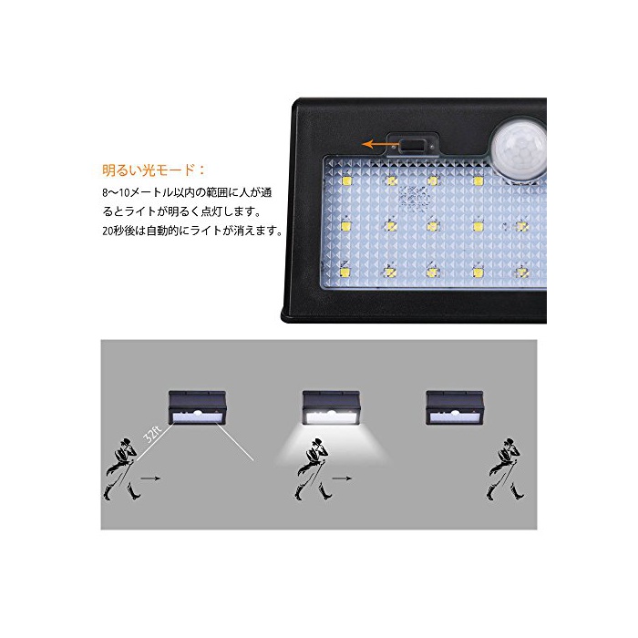 【자동 점등 기능 첨부 와】인감센서가 탑재되고, 사람이 센서의 감지 범위내에 지나가면,라이트가 자동적으로 점등하기 때문에,조명뿐만 아니라,방범 효과도 두드러집니다.