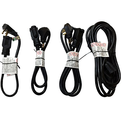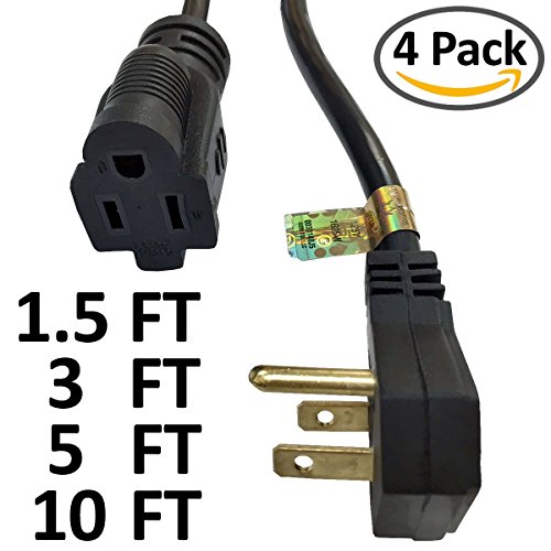 4pc. Multi-Length Pack Flat Plug Power Extension Cords - Black - Lengths: 1.5FT, 3FT, 5FT and 10FT - | 125V | 3 Prong | 16AWG | 13 Amp | 1625W | UL Listed