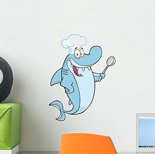 Chef Shark Cartoon Character Wall Mural by Wallmonkeys Peel and Stick Graphic (12 in H x 9 in W) WM192139