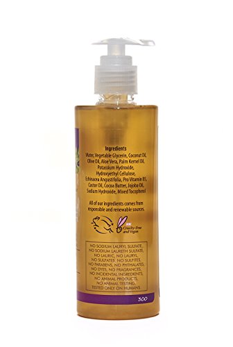 -. Feature : All Natural Face Cleanser with Echinacea - Intended for normal, combination and dry skin types. / Gentle exfoliating face cleanser made with all natural ingredient and cruelty free. Echinacea was used medicinally by the Plains Indians hundreds of years ago. Its list of beneficial qualities are very extensive and impressive. When used on the skin, Echinacea is great at fighting acne, healing the skin, reducing wrinkles and soothing the skin. It is also very rich in flavonoids are known for their antioxidant properties. / No Sodium Lauryl Sulfate, No Sodium Laureth Sulfate, No Laurel, No Lauric, No Lauryl, No Sulfates, No Sulfites, No Parabens, No Phthalates, No Dyes, No Fragrances, No Incidental Ingredients, No Animal Products, No Animal Testing. Tested only on Humans. What goes on your body, goes in your body. Doesn't contain any animal parts and never tested on animals. What goes on your body, goes in your body. / Ingredients: Water, Vegetable Glycerin, Coconut Oil, Olive Oil, Aloe Vera, Palm Kernel Oil, Potassium Hydroxide, Hydroxyethyl Cellulose, Echinacea Angustifolia, Pro Vitamin B5, Castor Oil, Cocoa Butter, Jojoba Oil, Sodium Hydroxide, Mixed Tocopherol. / Made in the USA!
