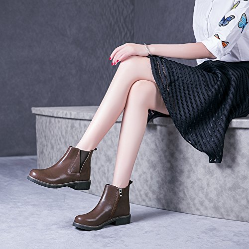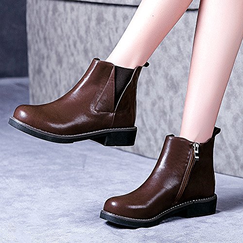 Feature: Zipper ankle boots / Low heel boots / Leather shoes / Elastic cord Every woman need a pair of this all-match chelsea boots in this winter!