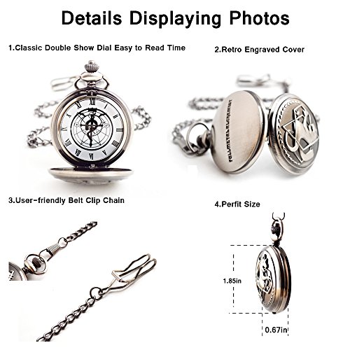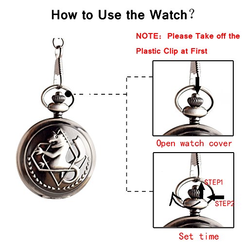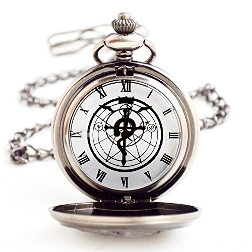 -. Binding : Watch -. Brand : BoShiYa -. Color : black -. Department : Mens -. EAN : 0611029625619 -. Feature : AWESOME ANIMAL POCKET WATCH: Domineering lion hunter-case pocket watch looks so cool. / MOVEMENT: Imported quartz movement pocket watch operated by battery. / ROME ALCHEMIST DIAL & ENGRAVED CASE: Easy time reader (with scepter pattern Rome dial & engraved Don't Forget 3.Otc. 11'' & FULLMETALALCHEMIST) is full of thick Fullmetal Alchemist characteristics. Best gift for FMA Fans. / Easy to set time( pull up crown & rotate it until reaching the exact time, then press crown back to its original position.) / GIFT BOX PACKAGE: The pocket watch is packaging by a gift box. Best Present for Birthday, Wedding, Christmas and Memorial Day gifts for Ed's Fans. -. Label : Boshiya -. Manufacturer : Boshiya -. Model : Boshiya-s -. MPN : Boshiya-s -. PartNumber : Boshiya-s -. ProductGroup : Watch -. ProductTypeName : WATCH -. Publisher : Boshiya -. Studio : Boshiya -. Title : BoShiYa Vintage Copper Fullmetal Alchemist Pocket Watch Quartz Fob Edward Elric's Anime Cosplay Gift with Chain & Box -. UPC : 611029625619