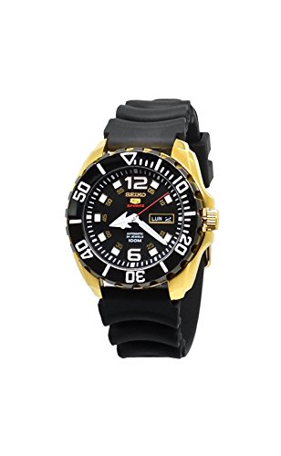 -. Title : SEIKO 5 'Baby Monster‘ 100M Automatic Watch Gold Tone Rubber Strap SRPB40K1