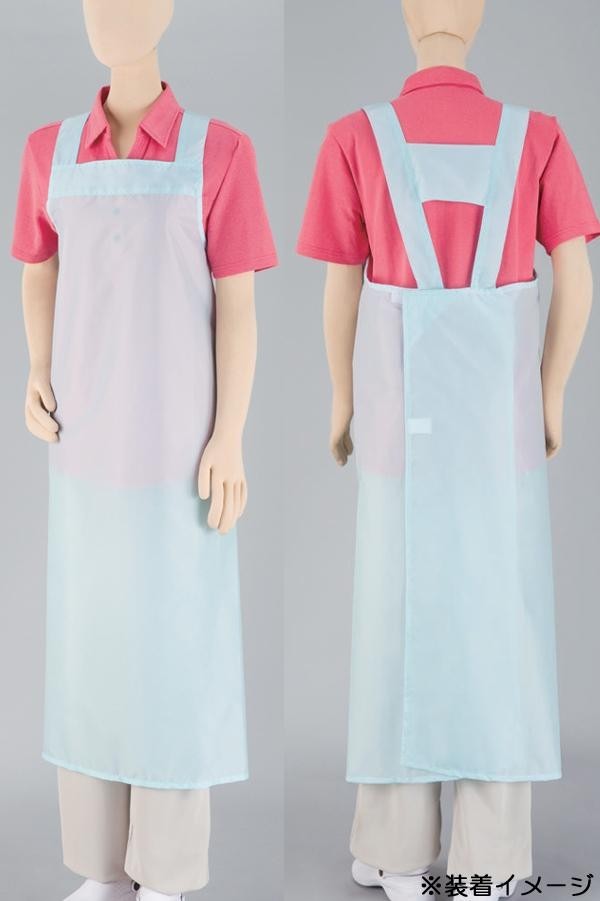 耐水加工(アクリルコーティング)済みの入浴介助用エプロンです。繰り返しお使いいただけます。