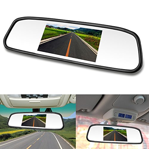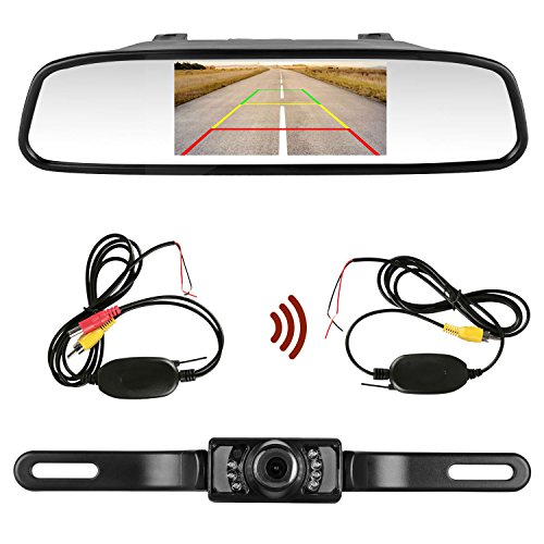 Emmko Backup camera Wireless and Mirror Monitor kit 9V-24V system Waterproof Universal Rear view Camera with 7 LED IR Night Vision 4.3 Display Guild lines for Car/Vehicle/SUV/Pickup