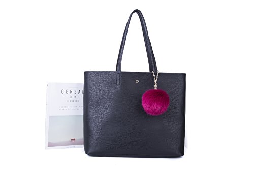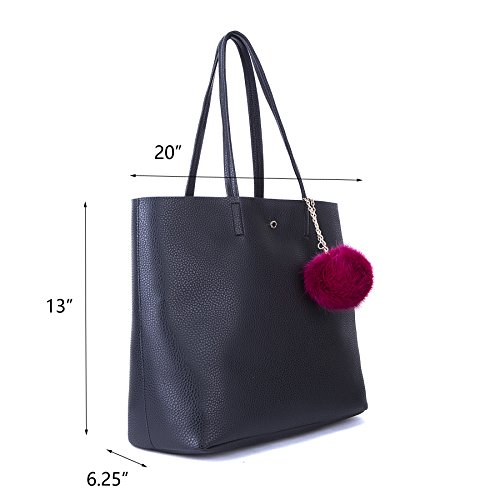 -. Title : The Lovely Tote Co. Women's Pom Pom Grainy Tote City Tote With Fur Pom One Size Black