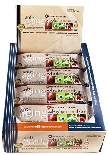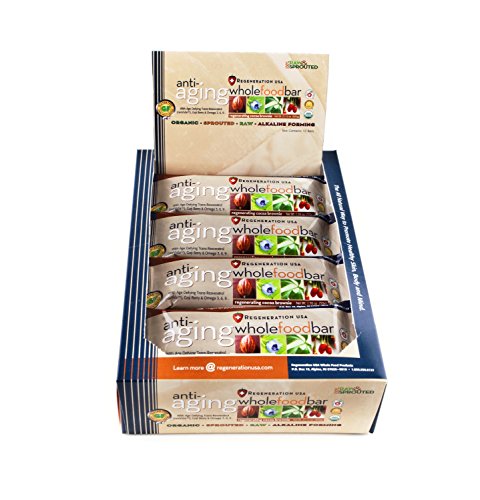 Studio : Regeneration USA Publisher : Regeneration USA Binding : Health and Beauty Product Description A great tasting blend of raw sprouted super foods and low glycemic ingredients. Each whole food bar contains the equivalent Trans-Resveratrol contained in 30 Bottles of Red Wine. The bar can be used as a meal replacement. Certified 100% Organic, Raw, Gluten Free Kosher. Our bars do not contain any processed sugars, corn syrup, salt, hydrogenated oils, genetically modified foods, preservatives or synthetic sweeteners of any variety. 0